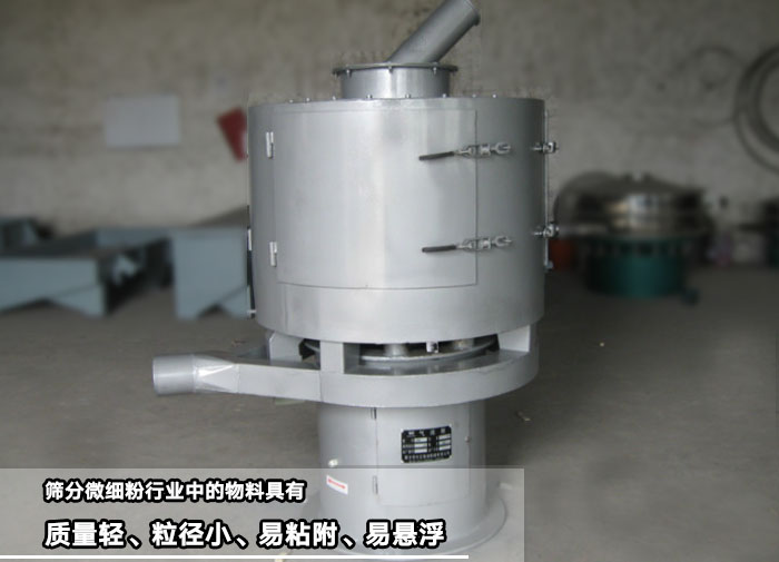 立式氣流篩:有些微細粉行業中的物料具有質量輕、粒徑小、易粘附、易懸浮等特點,現有的旋振篩利用激振力進行篩分粉末,效果是有限的,容易引起粉塵四溢,但立式氣流篩就比較適合篩分這種物料,因為它是全封閉結構,不會引起粉塵四溢。