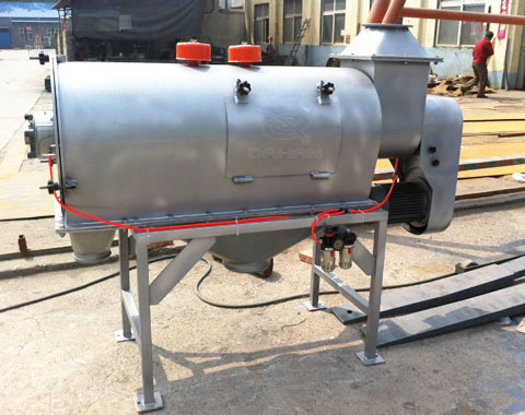 蔬菜粉氣流篩是蔬菜粉專用篩粉機。其篩網為圓筒狀,置于機體內,物料通過螺旋輸送系統后,和氣流混合、霧化進入網筒內;通過網筒內風輪葉片使物料同時受離心力和旋風推進力,從而近使物料噴射過網,由細料排出口排出,不能過網的物料沿網筒壁從粗料排出口排出。氣旋篩由于形狀為橫臥狀所以也叫臥式氣流篩或臥式氣流篩。