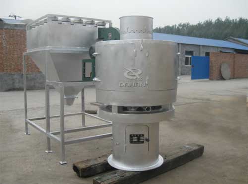 碳酸鈣振動篩與氣固分離除塵裝置組成閉路篩分系統。主機是氣流篩粉機,篩體的密閉外殼內裝有立式圓周筒形篩網;篩網內側有圓周形風輪,由裝于底座上的電動機驅動旋轉;篩體外殼的正上方裝有進料斗及粗篩,下部設有排渣口;電動機與主軸為皮帶連接;風輪料斗下口形成進料間隙。氣固分離除塵裝置由引風機,沉降室和除塵布袋組成,氣流篩與分離除塵裝置之間由塑料波紋軟管連接。