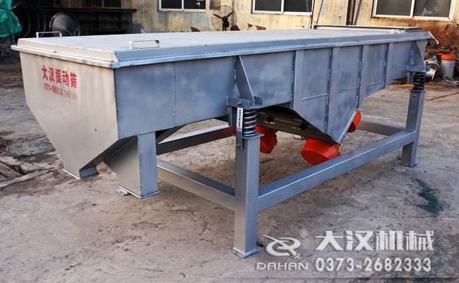 本品為1000mm(寬)x1600mm(長)單層兩個(gè)出料口碳鋼材質(zhì)鐵質(zhì)網(wǎng)架結(jié)構(gòu)直線震動(dòng)篩。(此機(jī)是客戶定制篩分機(jī))。